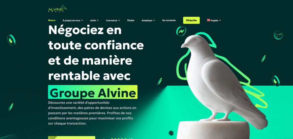 AlvineGroup.com se présente comme un courtier moderne et accessible pour les investisseurs particuliers. Le site affirme proposer des services financiers variés, une expertise solide et des rendements attractifs. La plateforme affiche un design propre et professionnel, ce qui peut créer une impression de sérieux.