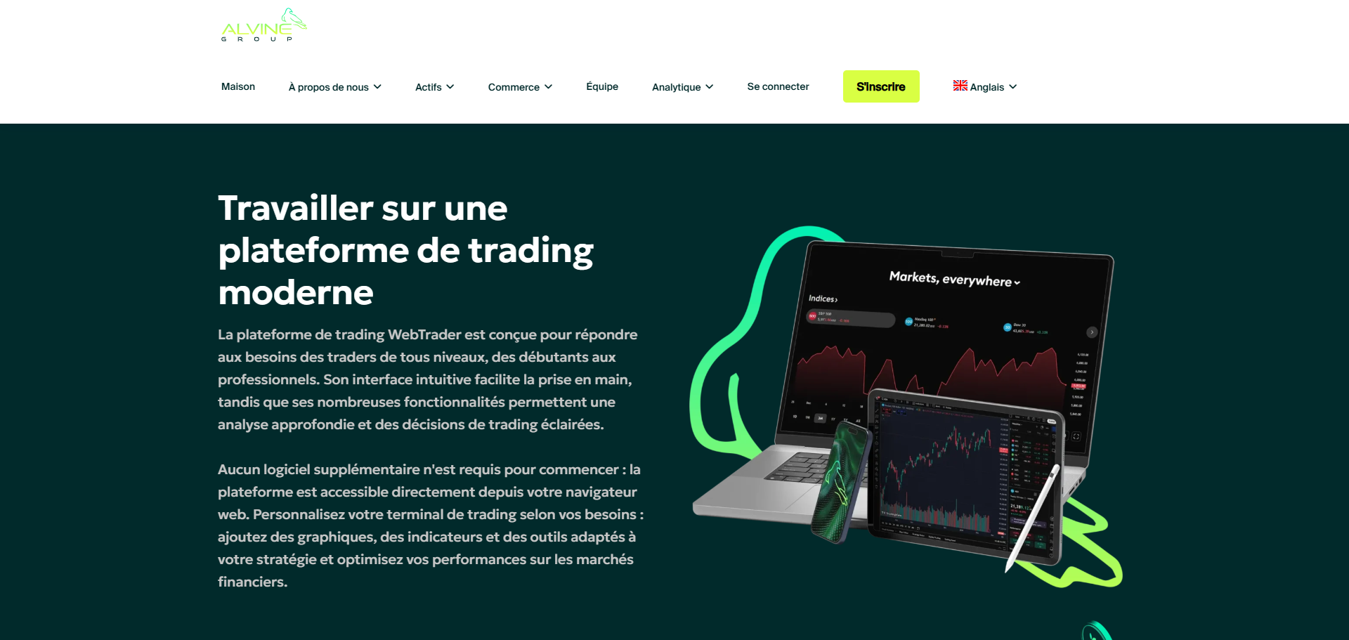 Au premier regard, AlvineGroup affiche une interface soignée. Le site met en avant une expérience fluide, des outils modernes et une promesse d’accès simple aux marchés financiers. Le discours semble rassurant, car il évoque une équipe expérimentée et une approche centrée sur l’accompagnement. Cette communication renforce l’impression d’un courtier sérieux.